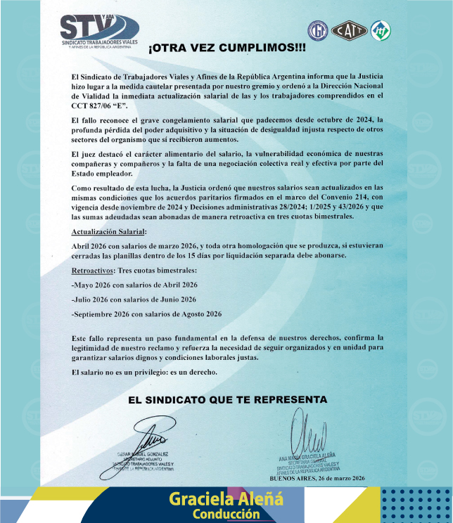 DIA HISTORICO PARA LAS Y LOS TRBAJADORES DE VIALIDAD NACIONAL