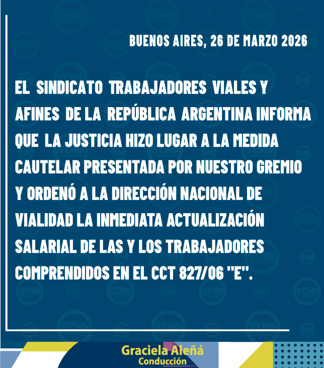 En medio de la difícil situación que atraviesa Vialidad Nacional, quisimos compartir una buena noticia con todos los compañeros y compañeras. Porque cuando hay un sindicato presente, hay gestión, hay defensa y hay resultados.