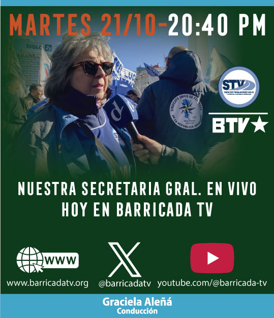 Nuestra Secretaria General Graciela Aleñá estará en Barricada TV para poner en palabras la lucha, la defensa y la convicción de todos los trabajadores y trabajadoras viales del país 🇦🇷